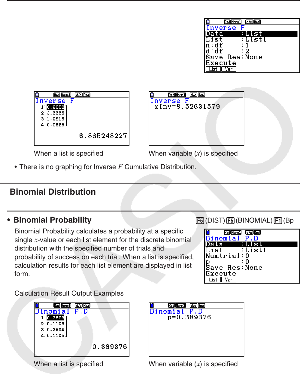 • Inverse F Cumulative Distribution 5(DIST) 4(F) 3(InvF)