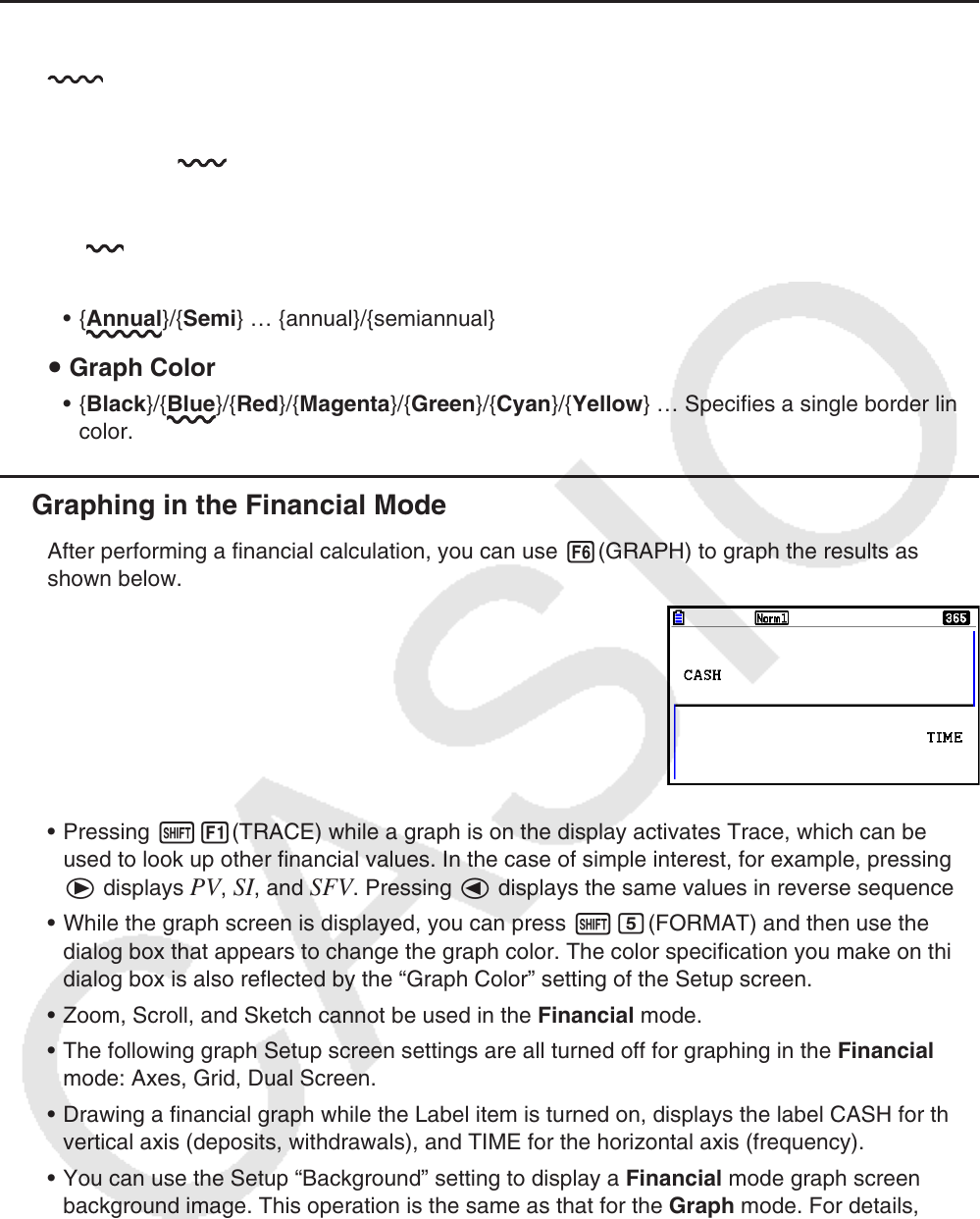 • The following graph Setup screen settings are all turned off for graphing in the Financial