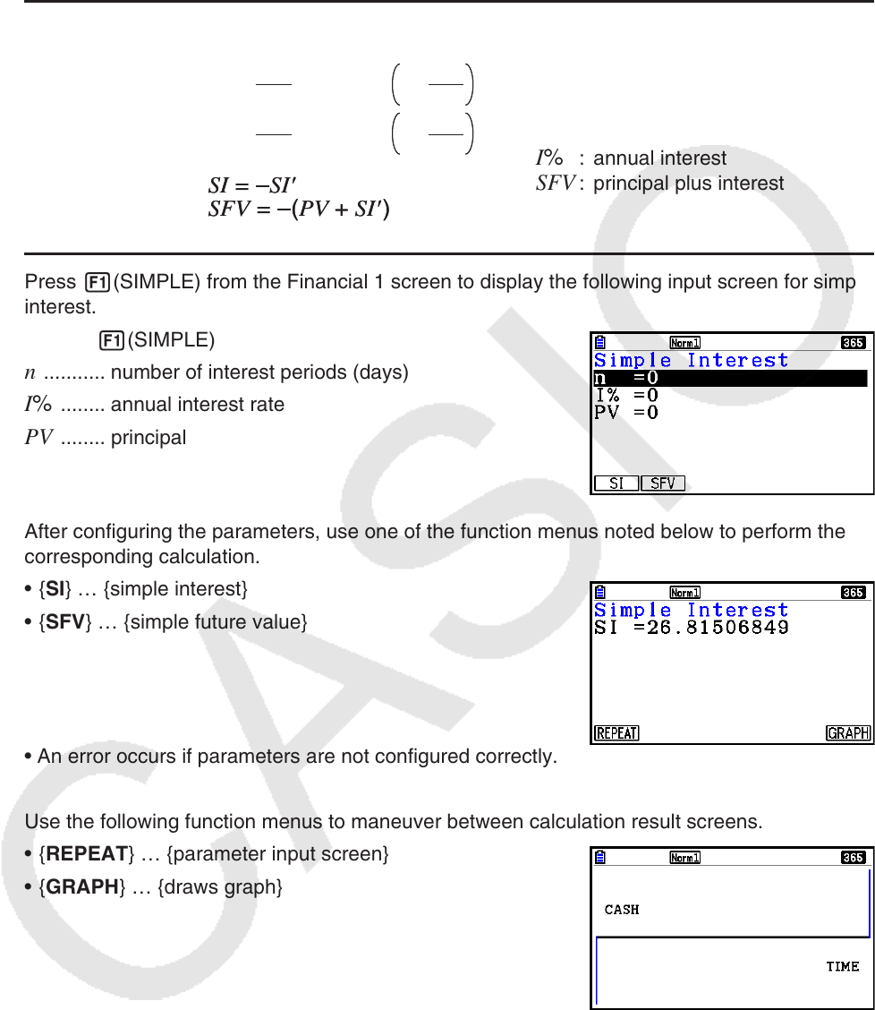 Press 1(SIMPLE) from the Financial 1 screen to display the following input screen for simple