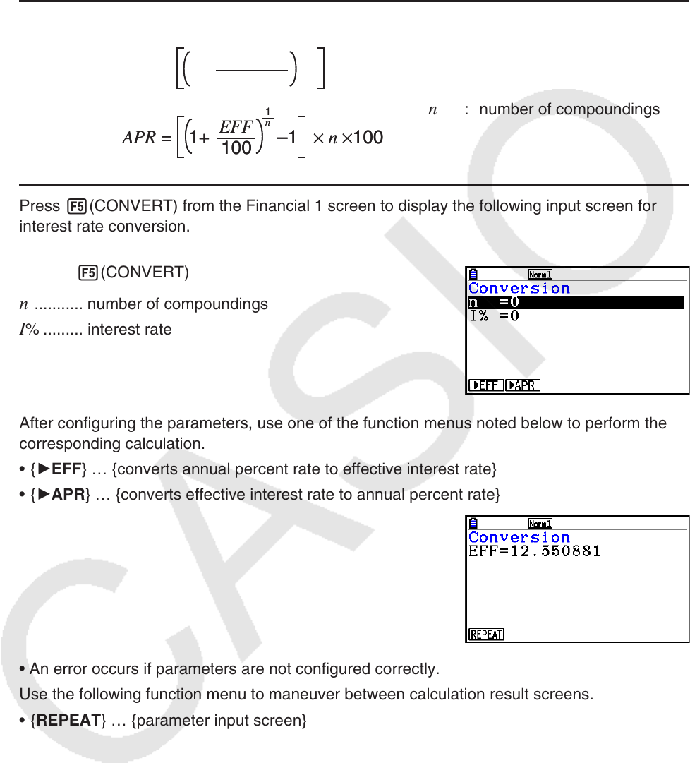 • { 'EFF } … {converts annual percent rate to effective interest rate}