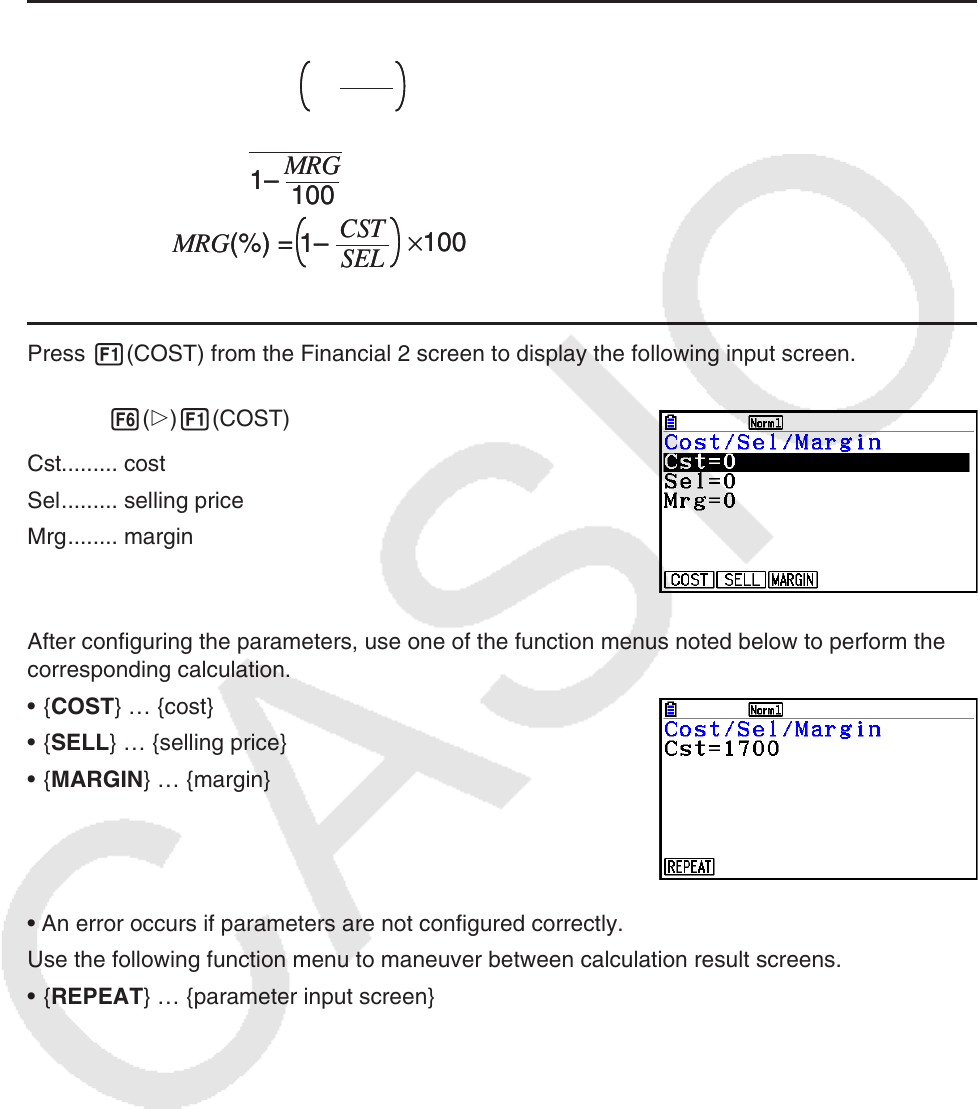Press 1(COST) from the Financial 2 screen to display the following input screen.