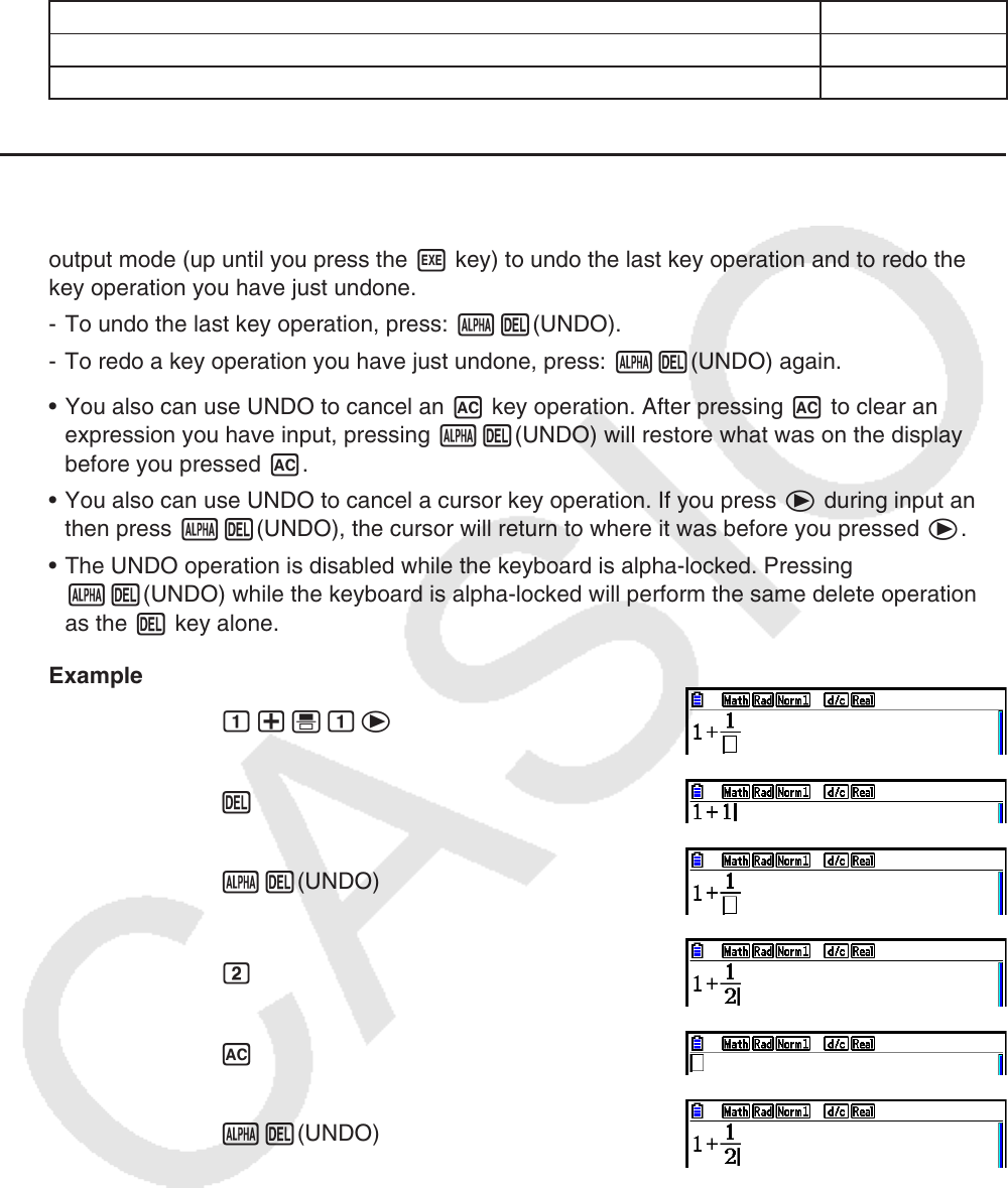 • The UNDO operation is disabled while the keyboard is alpha-locked. Pressing