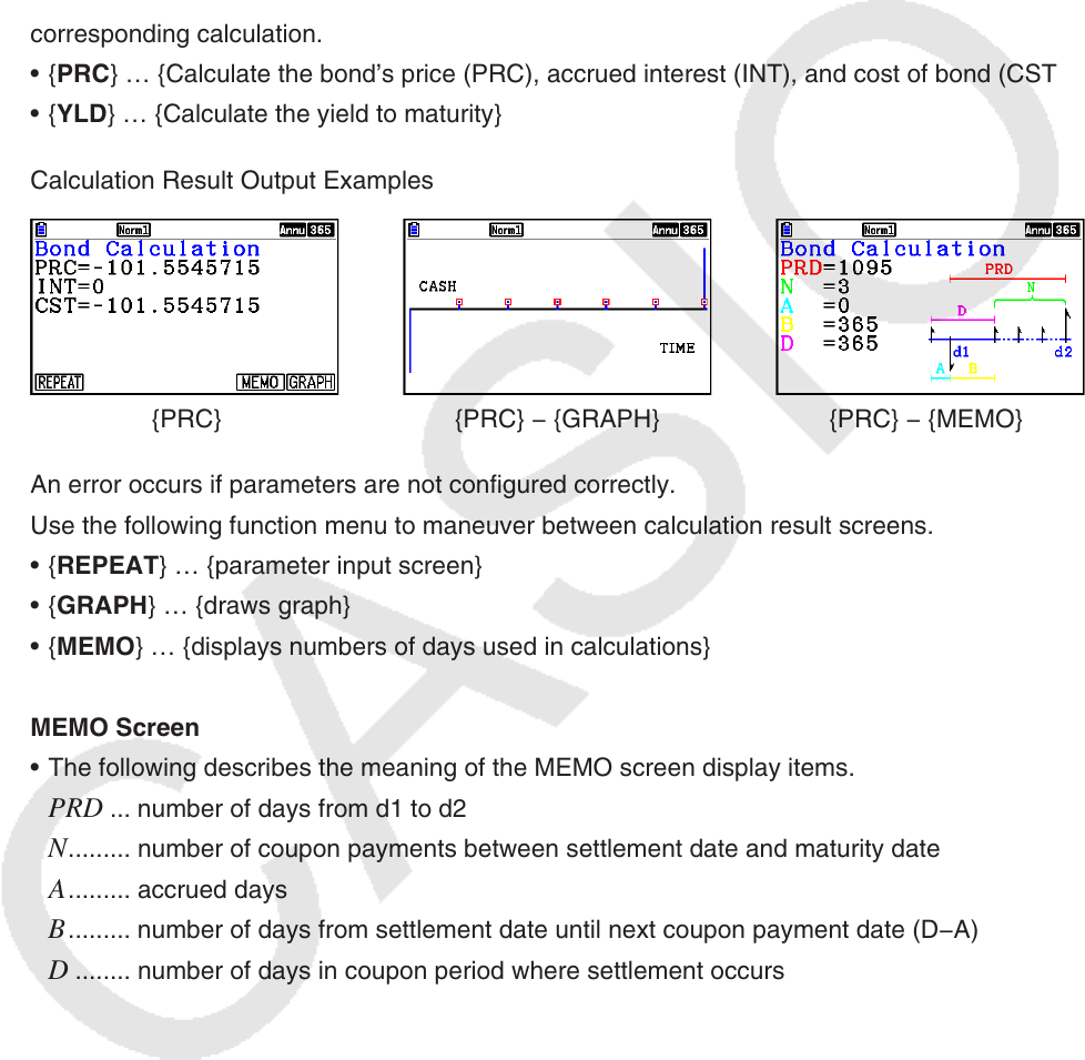 • {PRC} … {Calculate the bond’s price (PRC), accrued interest (INT), and cost of bond (CST)}