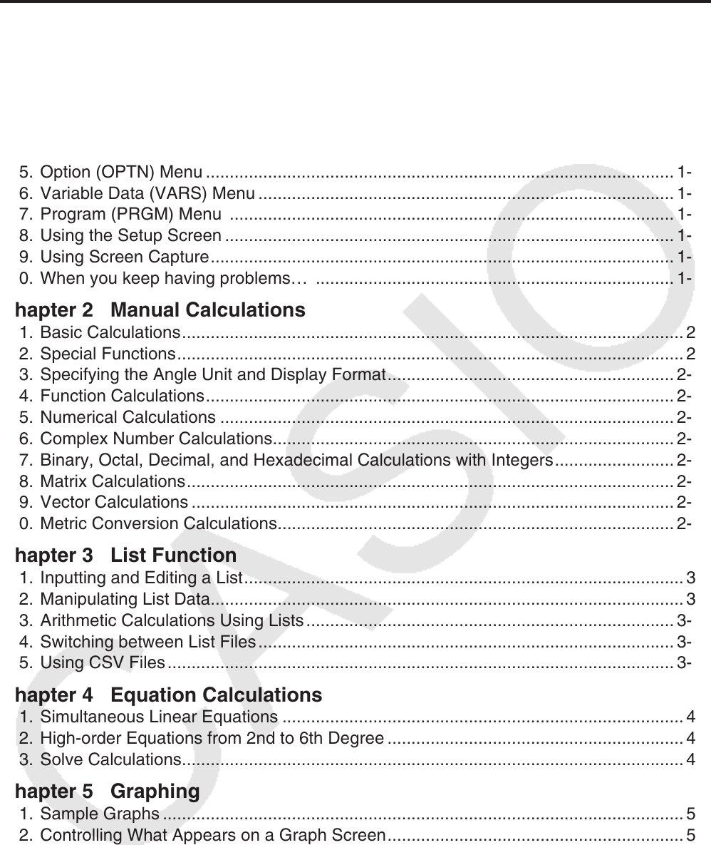 5. Option (OPTN) Menu .................................................................................................. 1-30