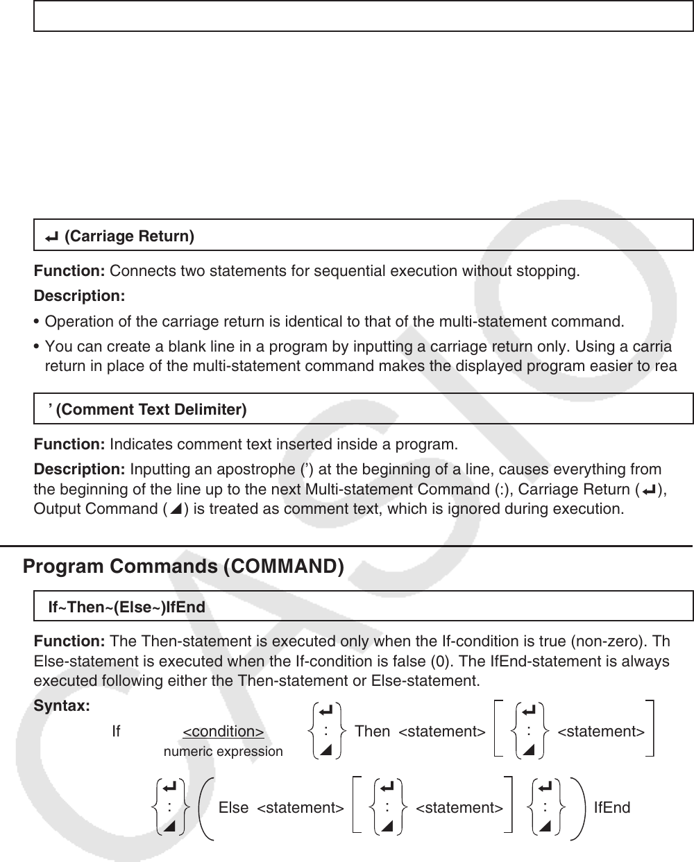 • Operation of the carriage return is identical to that of the multi-statement command.