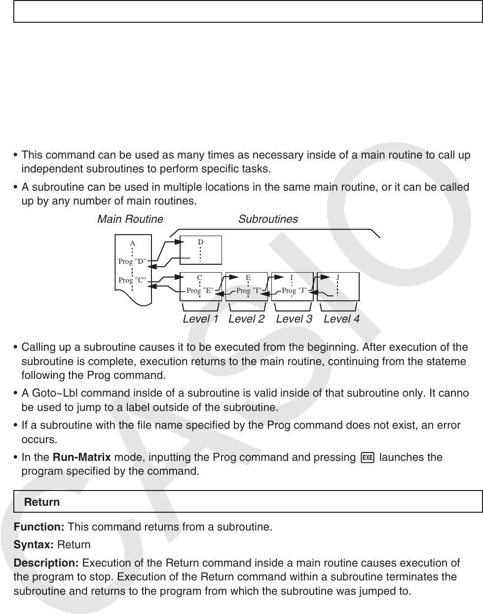 • Calling up a subroutine causes it to be executed from the beginning. After execution of the
