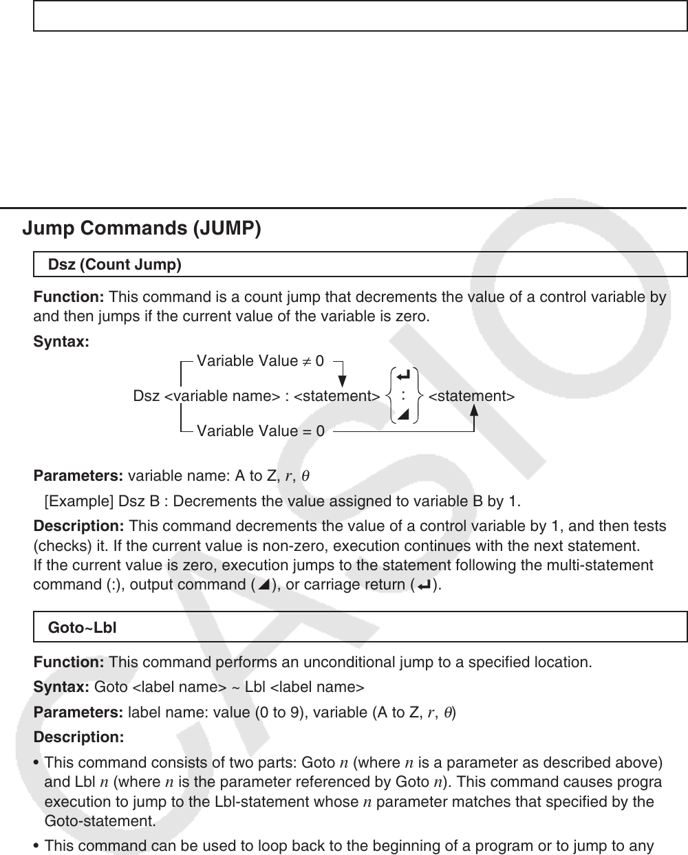 and Lbl n (where n is the parameter referenced by Goto n ). This command causes program
