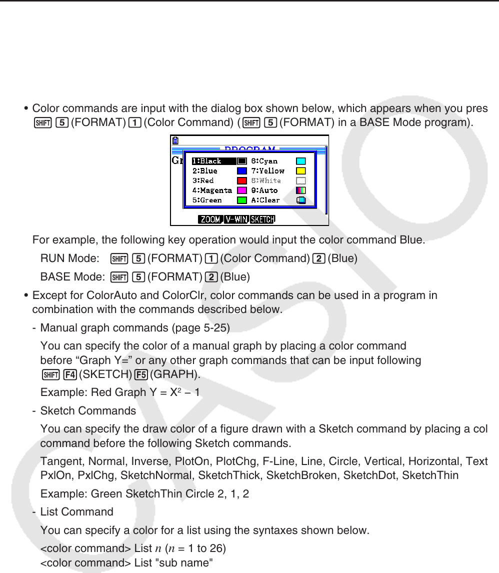 • Except for ColorAuto and ColorClr, color commands can be used in a program in