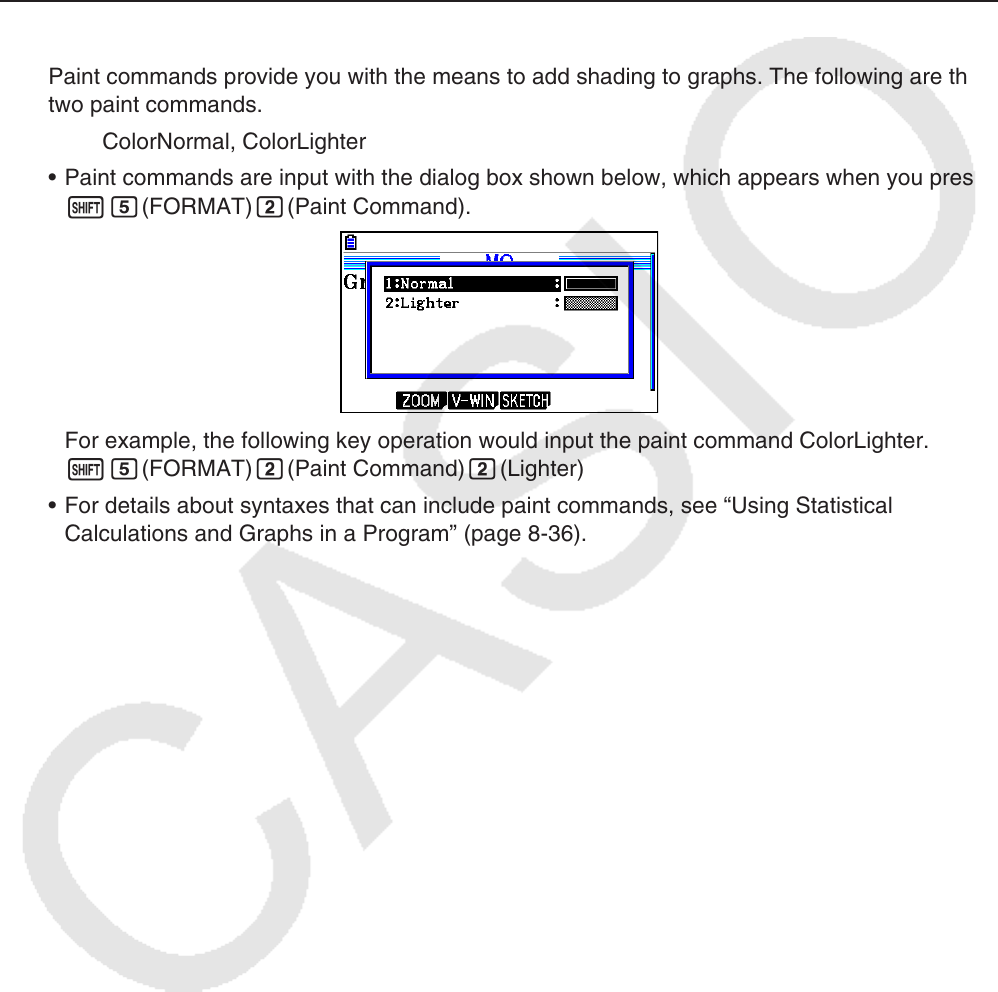 • Color commands also can be used when drawing graphs using Graph mode or Statistics