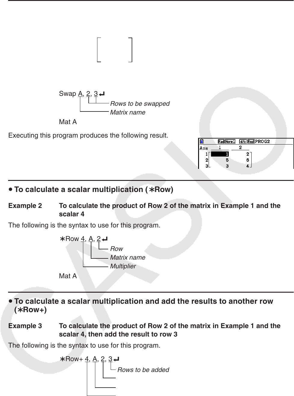 Example 1 To swap the values of Row 2 and Row 3 in the following matrix: