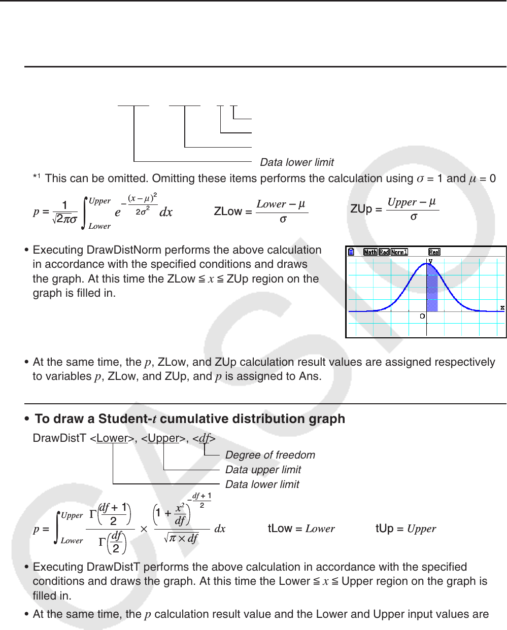 • Executing DrawDistT performs the above calculation in accordance with the specified