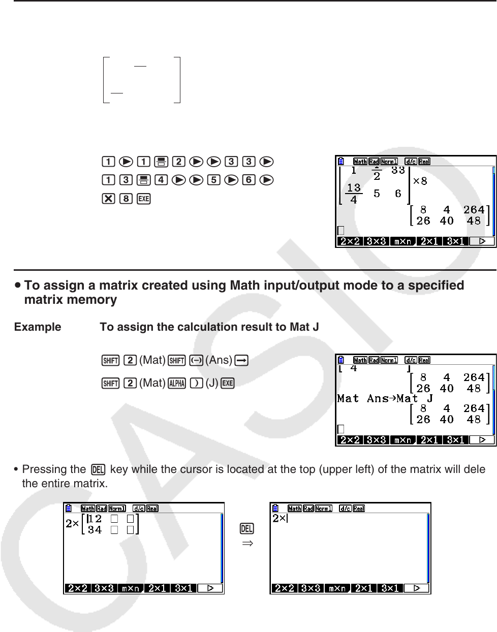 • Pressing the D key while the cursor is located at the top (upper left) of the matrix will delete