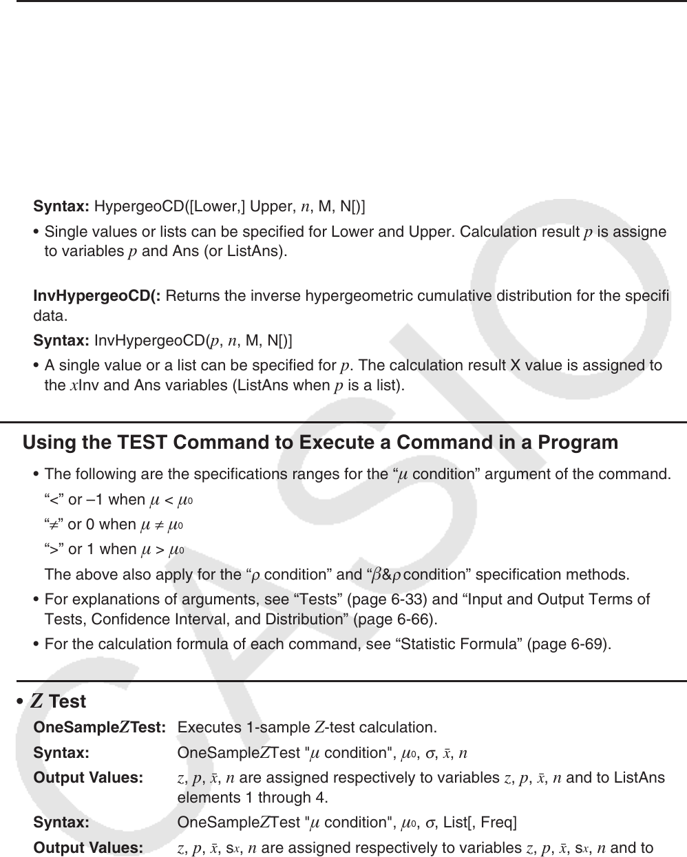 • For explanations of arguments, see “Tests” (page 6-33) and “Input and Output Terms of