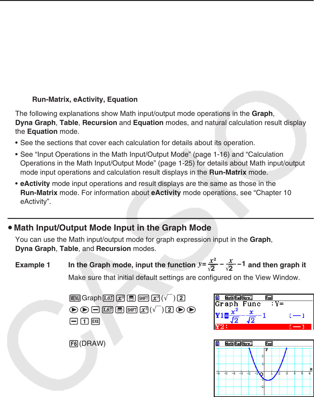 k Using Graph Modes and the Equation Mode in the Math Input/Output