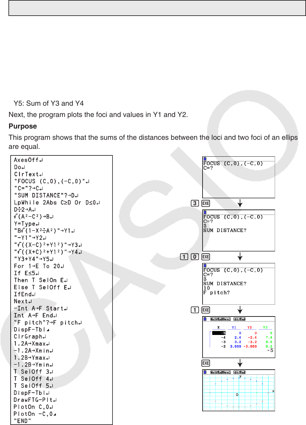 This program shows that the sums of the distances between the loci and two foci of an ellipse