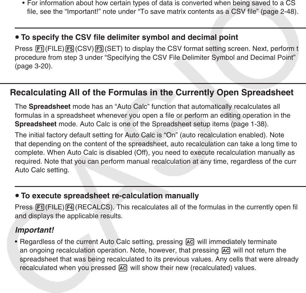 complete. When Auto Calc is disabled (Off), you need to execute recalculation manually as