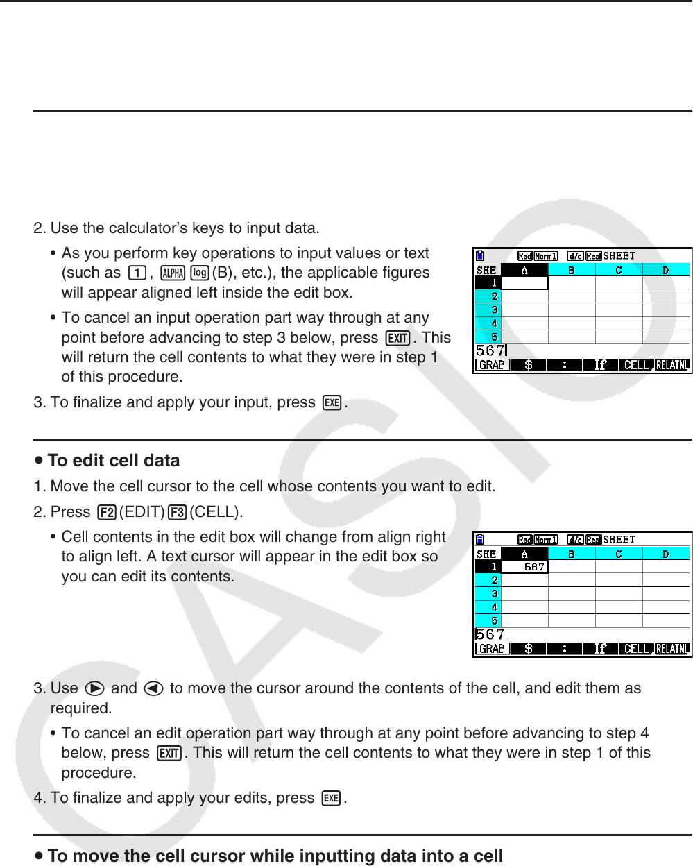 1. Move the cell cursor to the cell whose contents you want to edit.