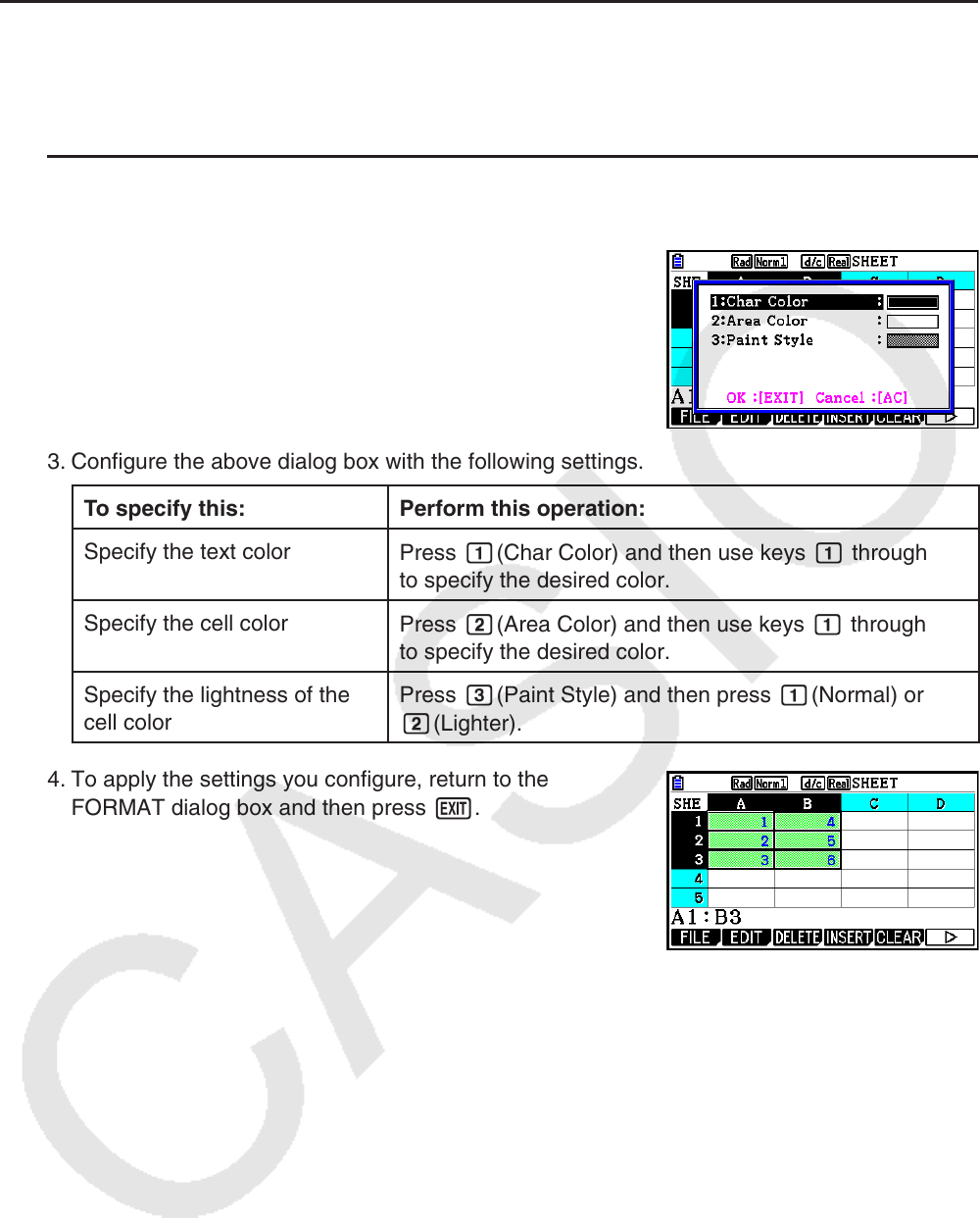 Specify the cell color