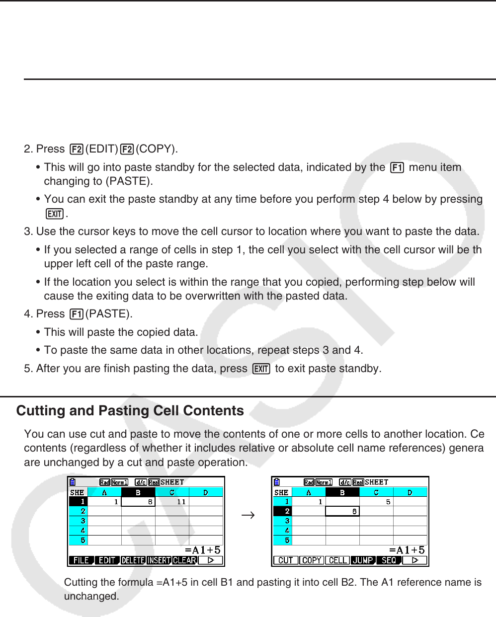 3. Use the cursor keys to move the cell cursor to location where you want to paste the data.
