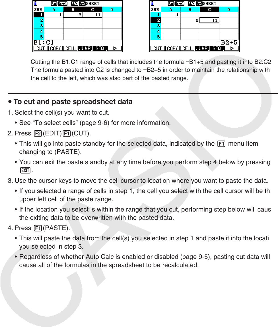 • Regardless of whether Auto Calc is enabled or disabled (page 9-5), pasting cut data will