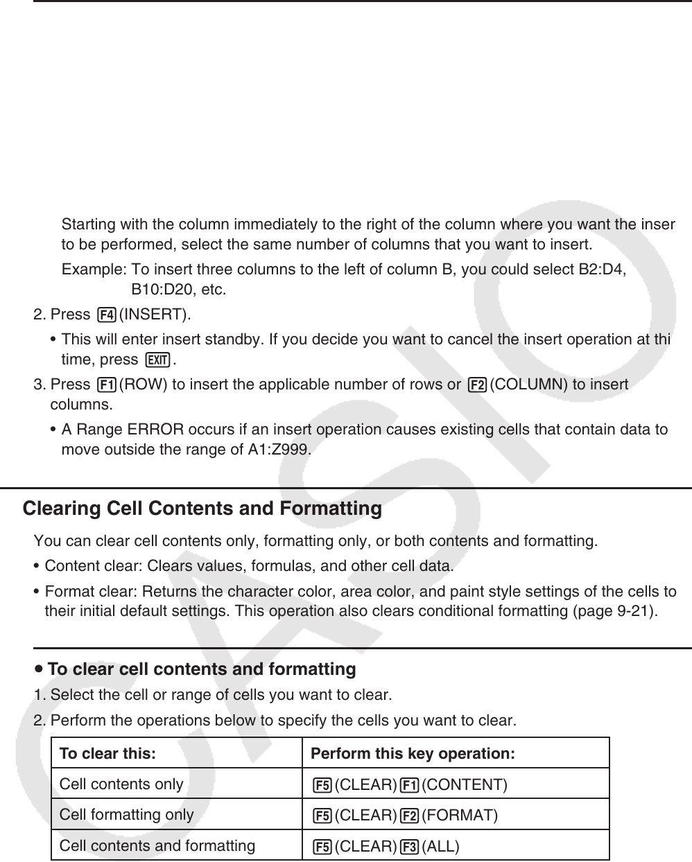 their initial default settings. This operation also clears conditional formatting (page 9-21).