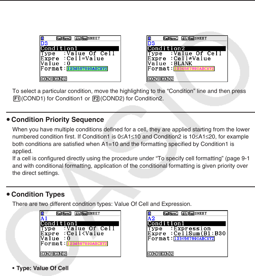 You can specify up to two conditions for each cell.