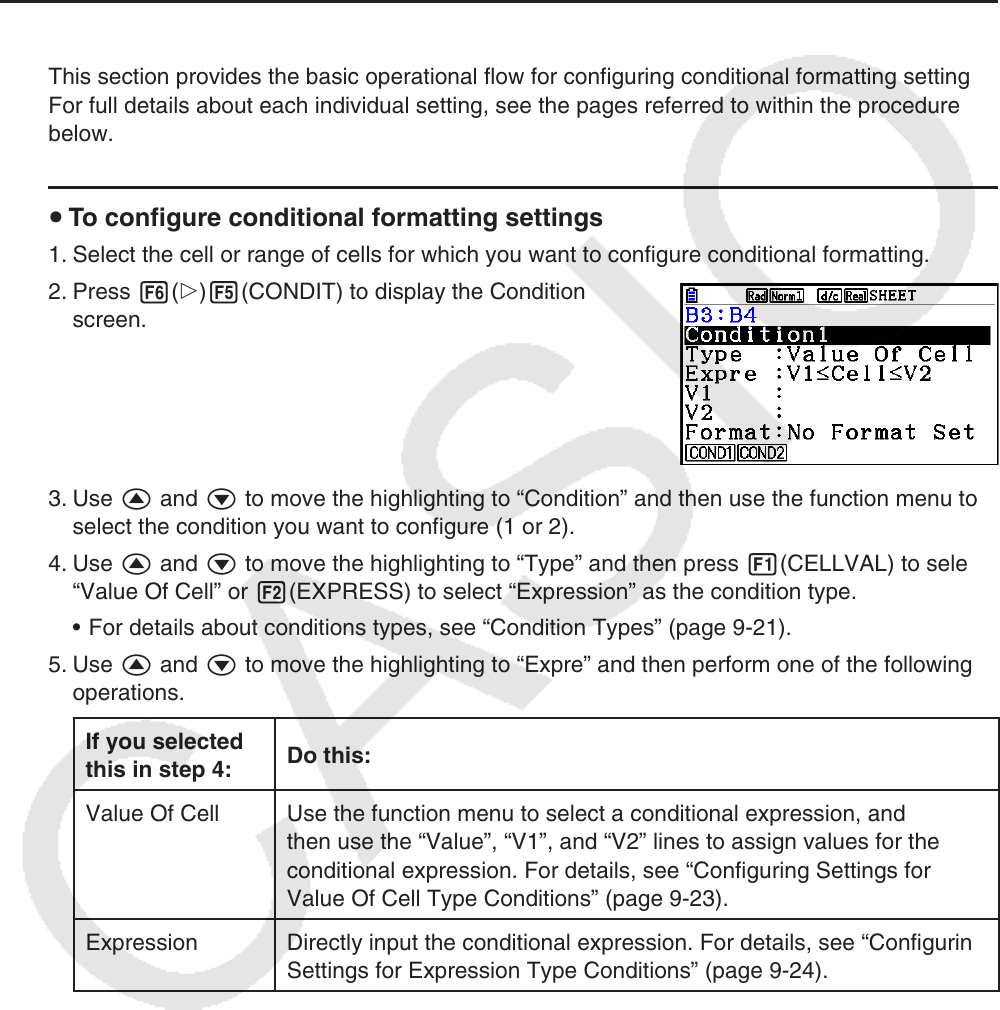 This section provides the basic operational flow for configuring conditional formatting settings.