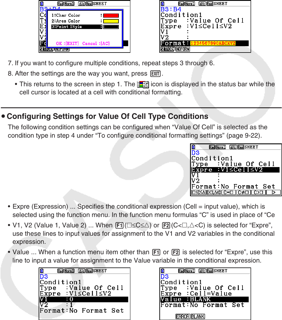 condition type in step 4 under “To configure conditional formatting settings” (page 9-22).