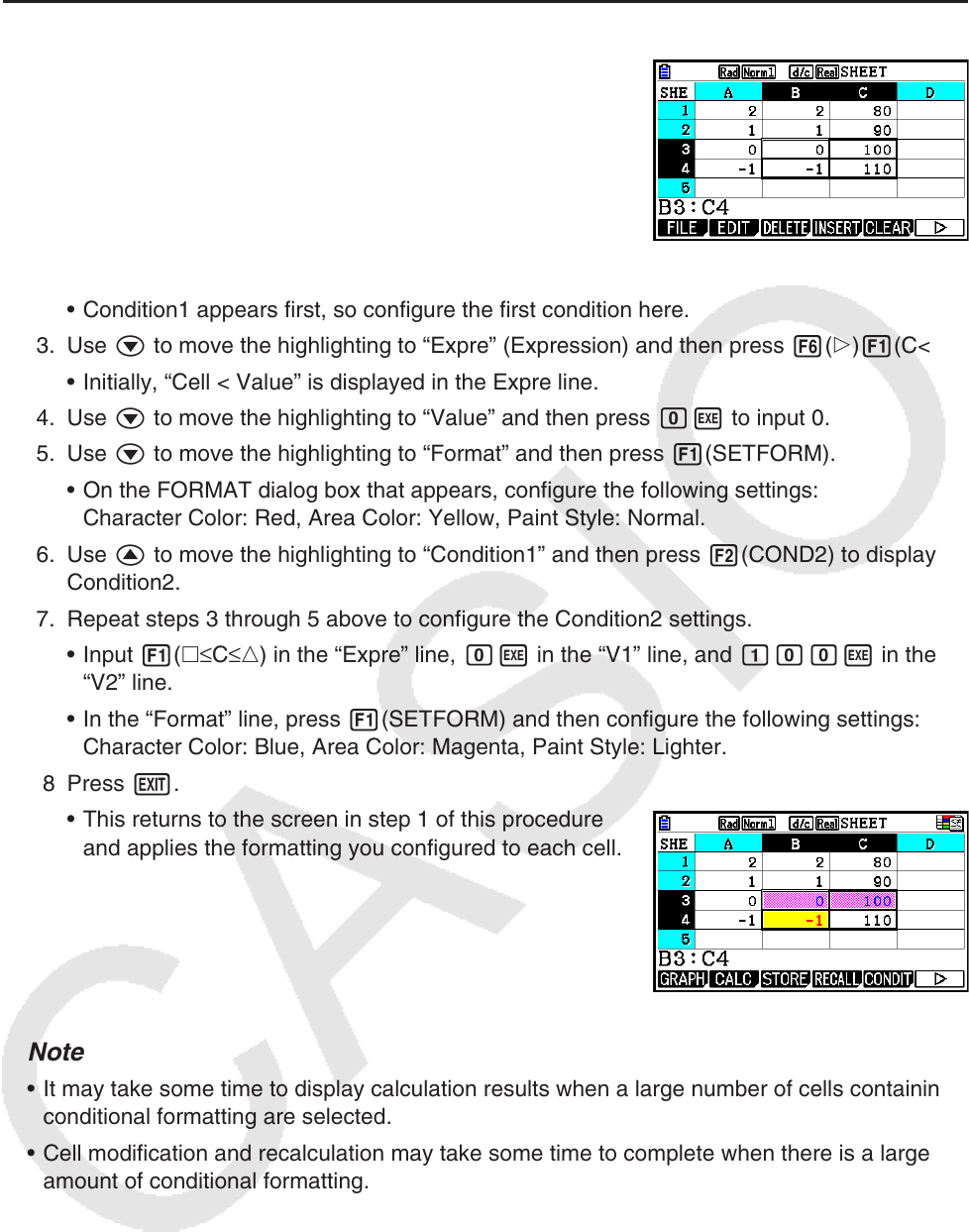 6. Use f to move the highlighting to “Condition1” and then press 2(COND2) to display