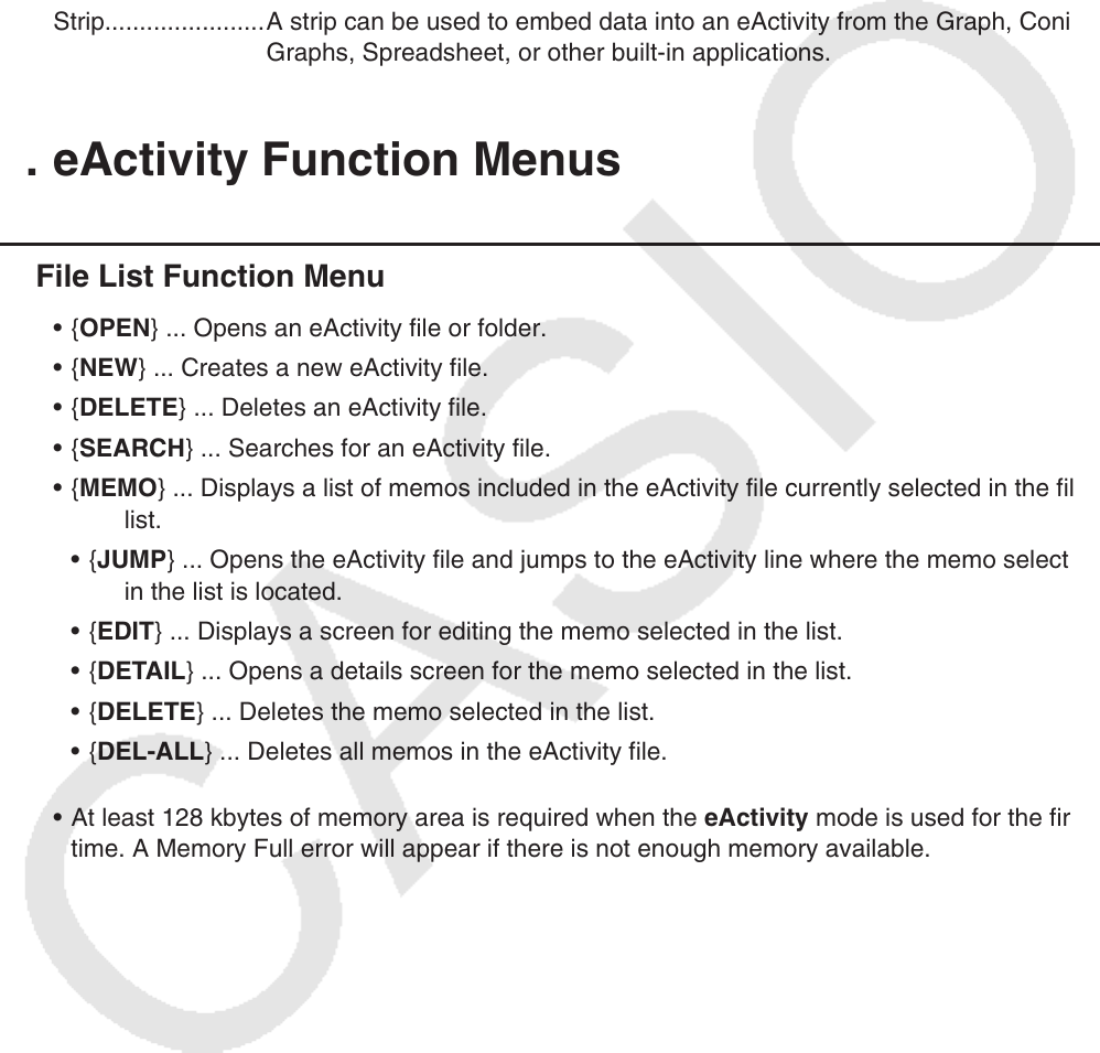 • {MEMO} ... Displays a list of memos included in the eActivity file currently selected in the file