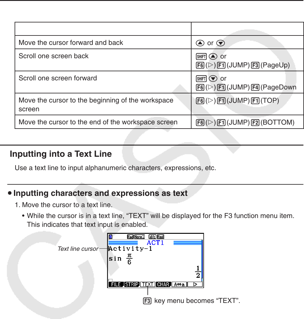 • While the cursor is in a text line, “TEXT” will be displayed for the F3 function menu item.