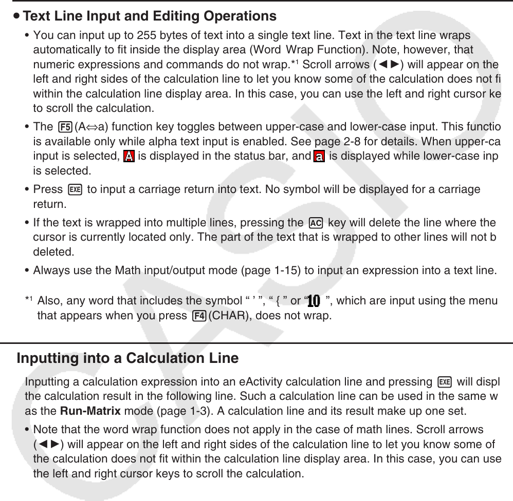 • Note that the word wrap function does not apply in the case of math lines. Scroll arrows