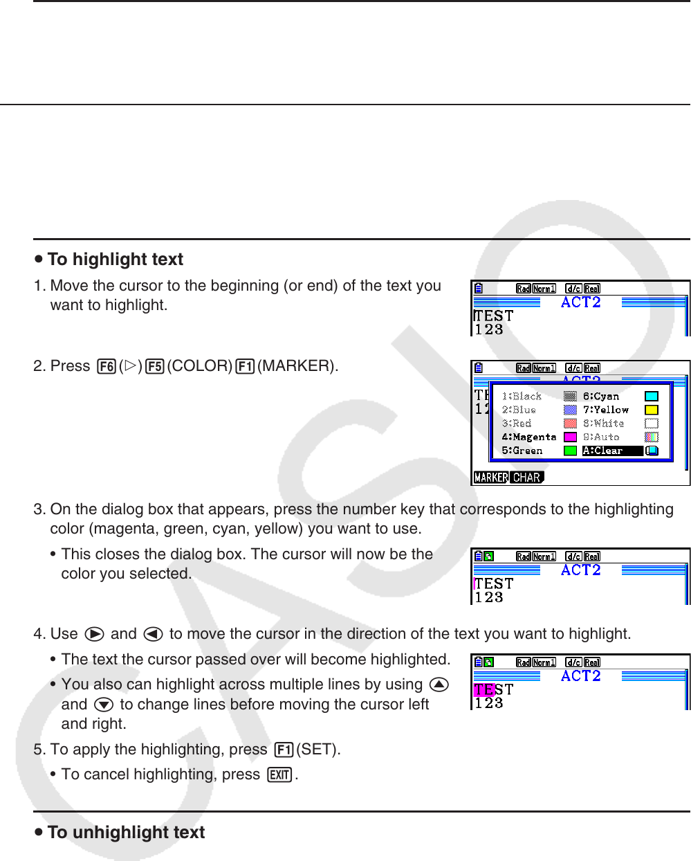 Perform the same operation you used to highlight text under “To highlight text” to unhighlight it.