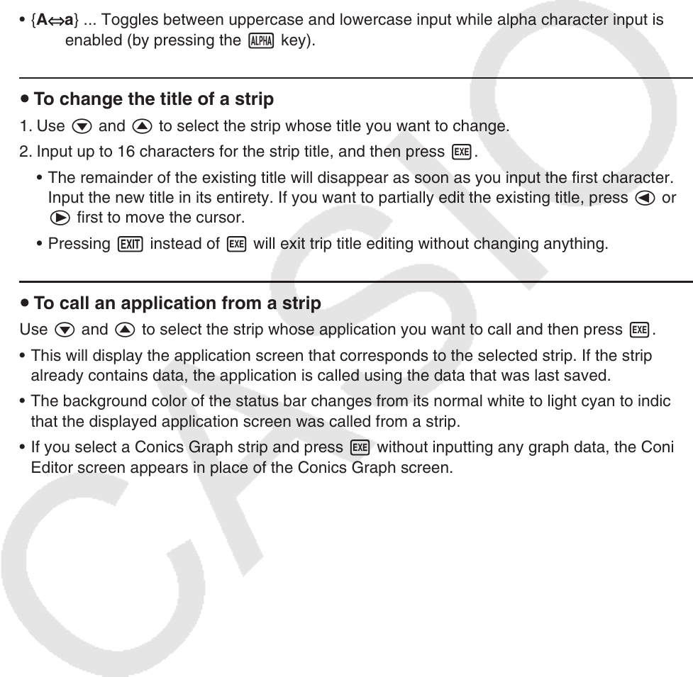 a } ... Toggles between uppercase and lowercase input while alpha character input is