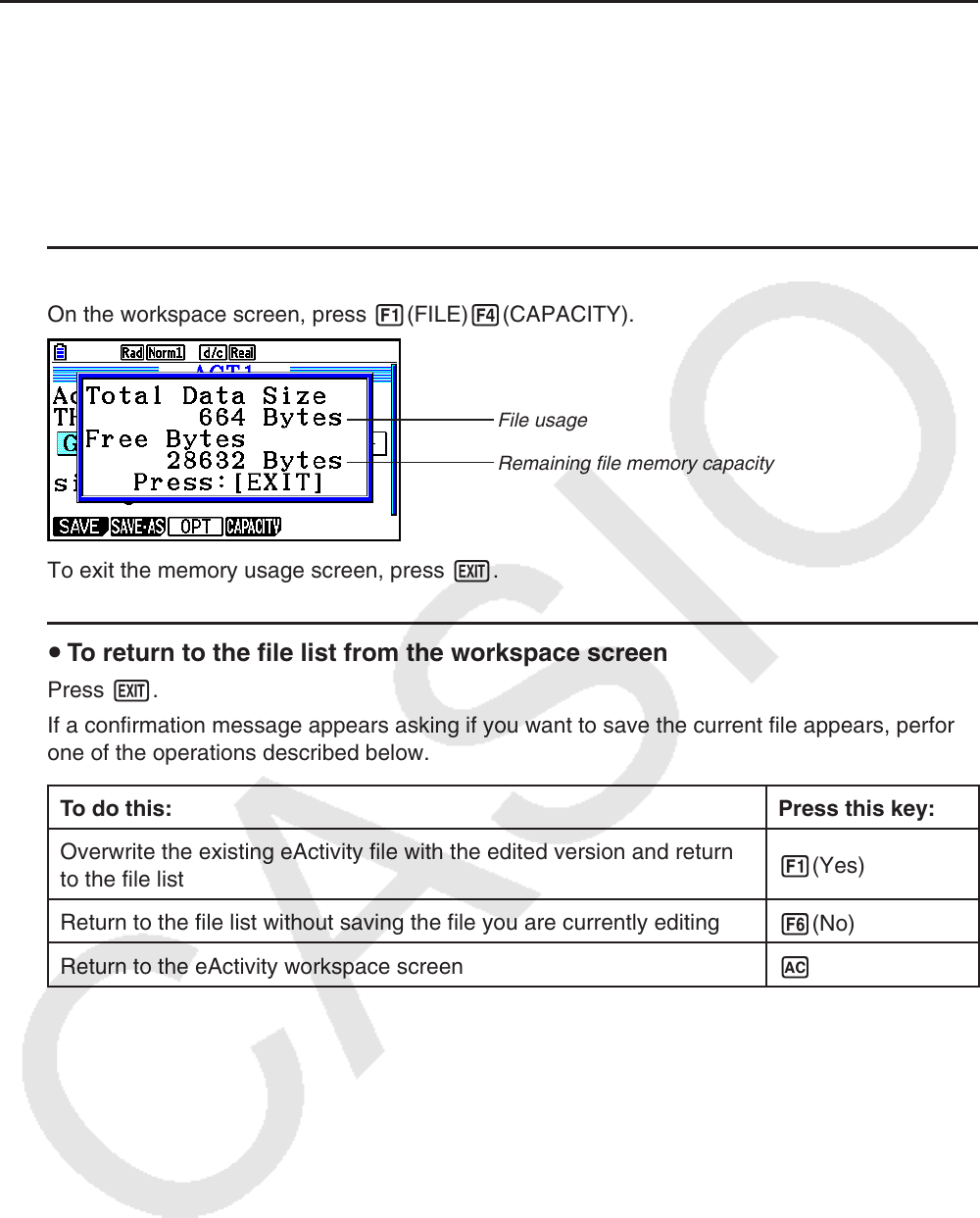 eActivity file memory usage screen to check how much memory capacity remains for the file