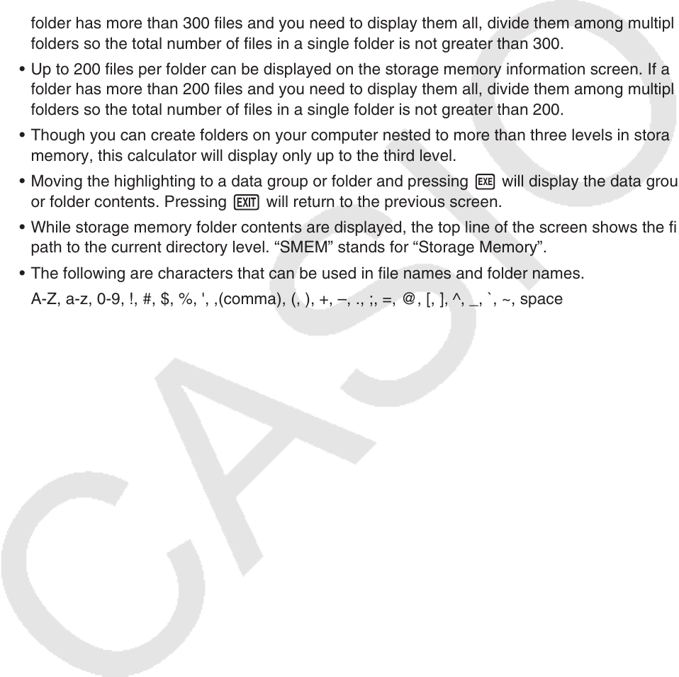 • Up to 300 files per folder can be displayed on the main memory information screen. If a