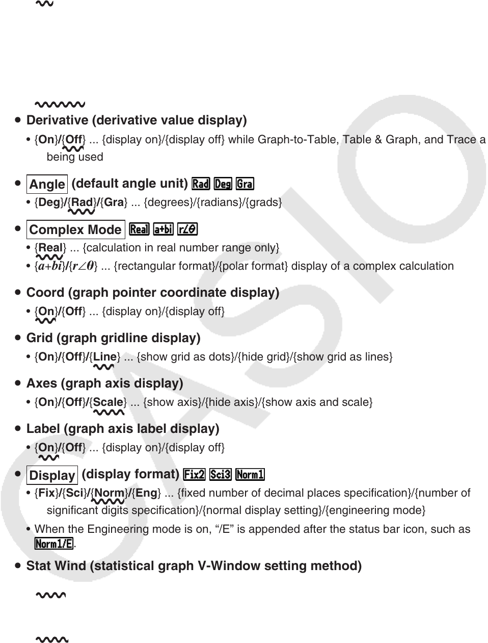 • {On}/{Off} ... {display on}/{display off} while Graph-to-Table, Table & Graph, and Trace are