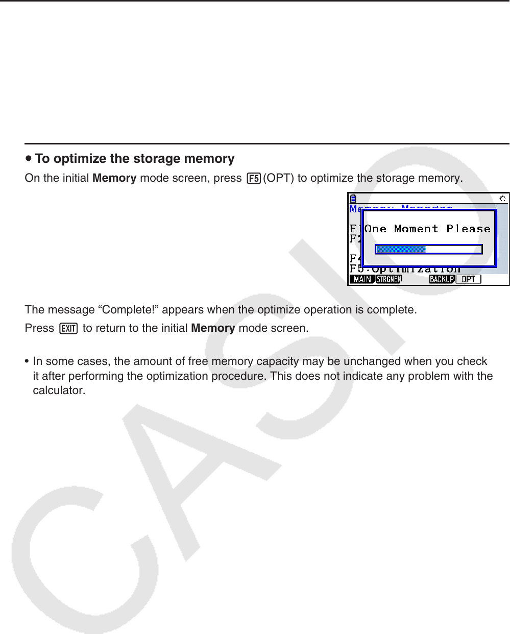 • Note that the calculator performs storage memory optimization automatically whenever you