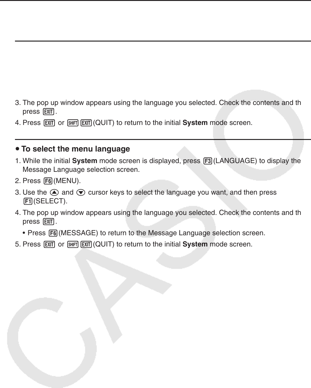 • Press 6(MESSAGE) to return to the Message Language selection screen.