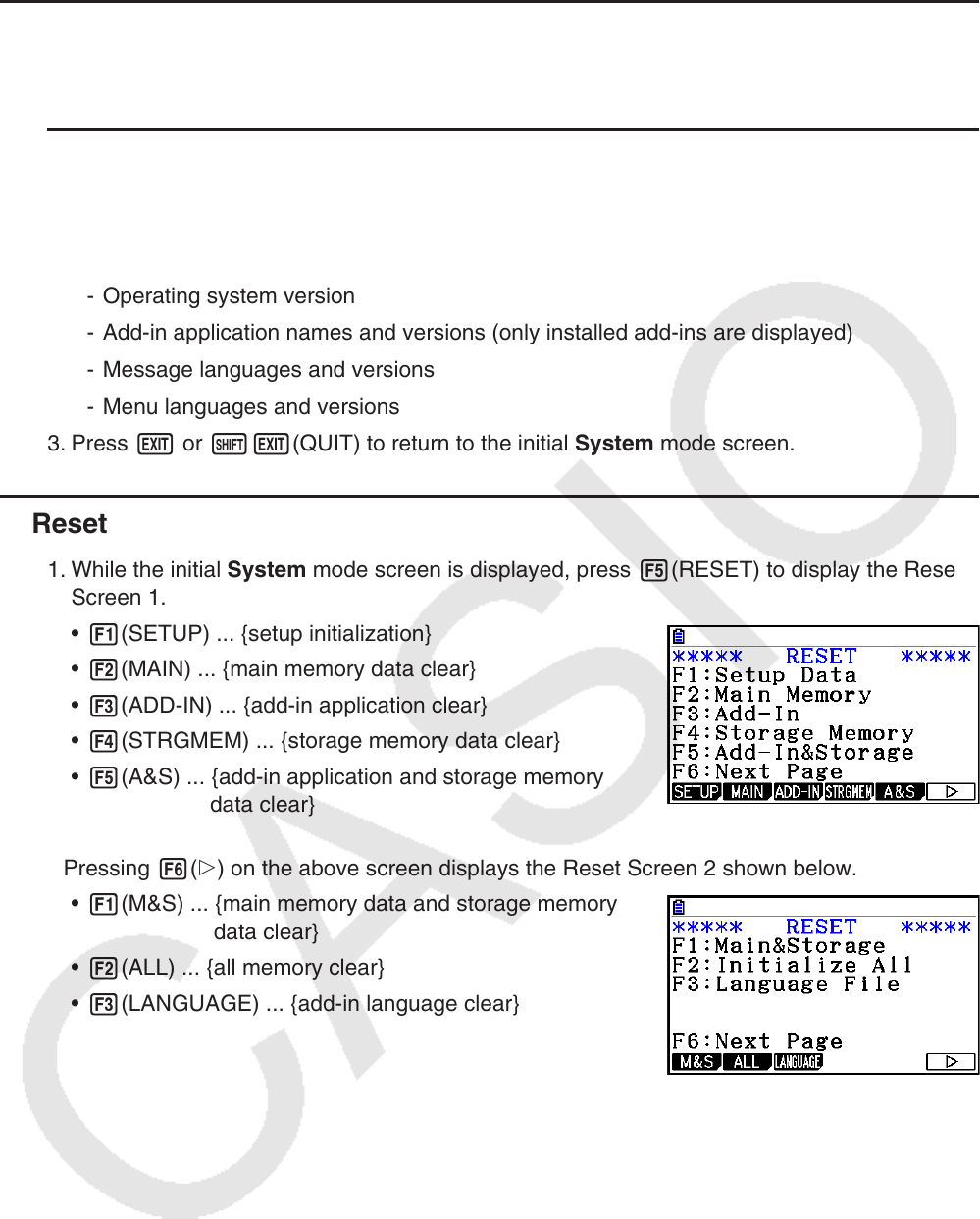 1. While the initial System mode screen is displayed, press 5(RESET) to display the Reset