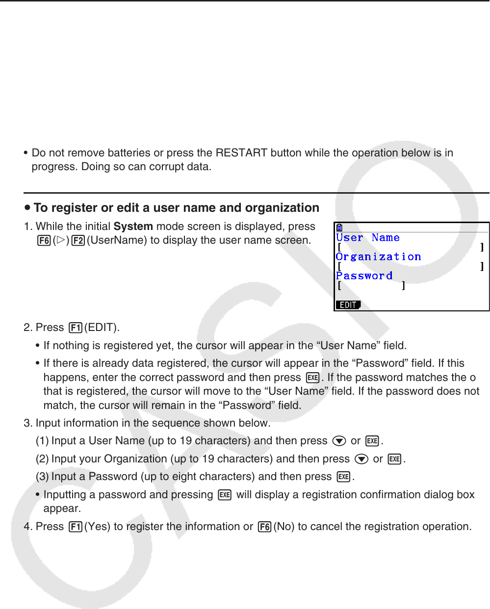 • In order to protect against misuse of your calculator, be sure to also register a password