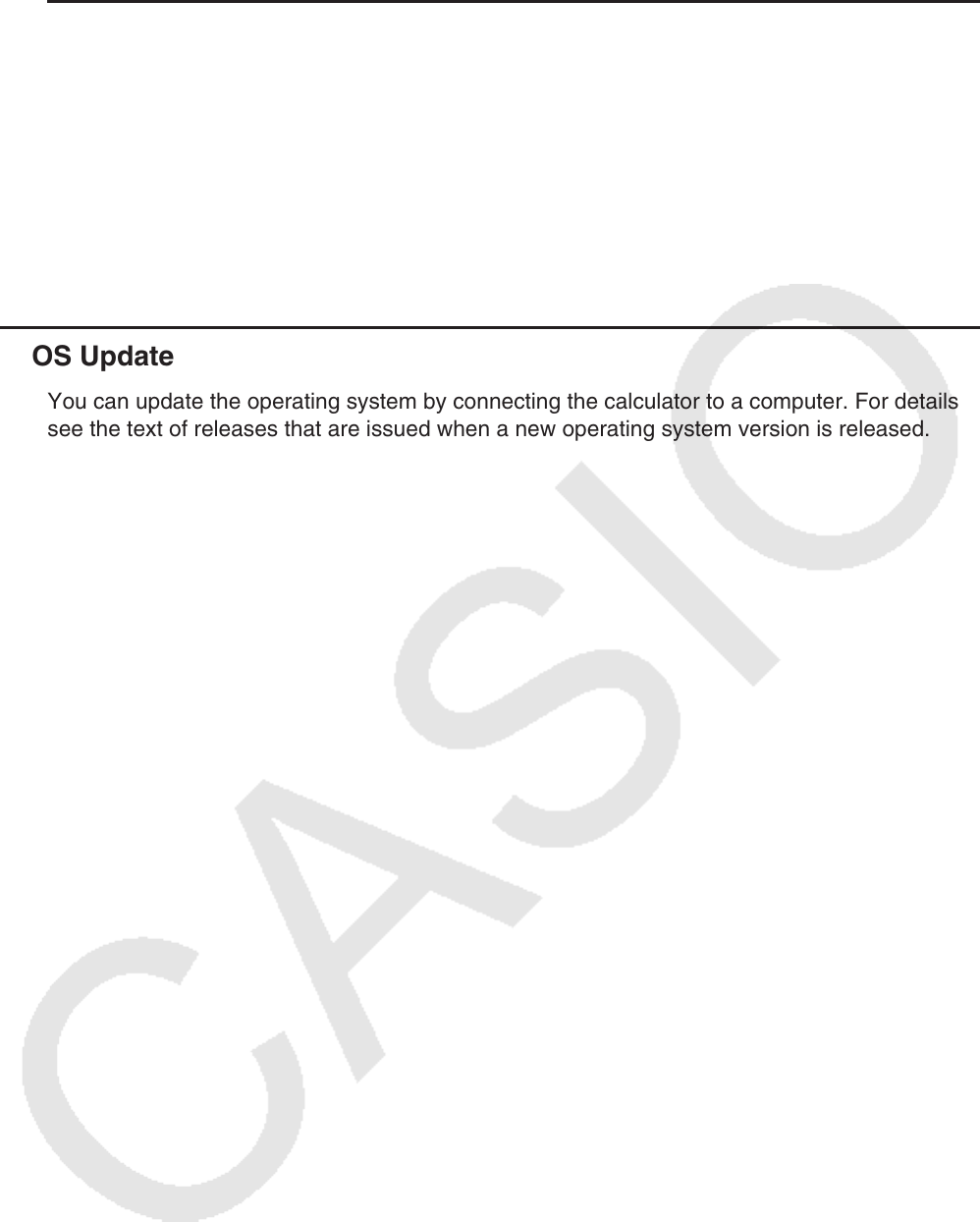 You can update the operating system by connecting the calculator to a computer. For details,
