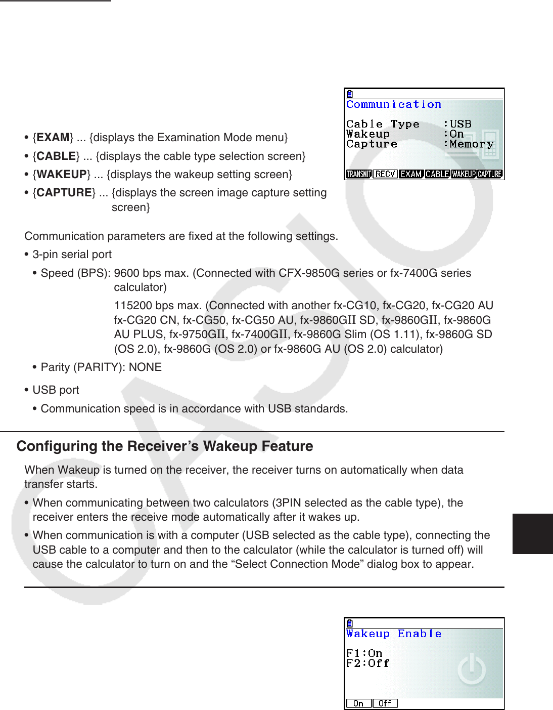 • Speed ( BPS): 9600 bps max. (Connected with CFX-9850G series or fx-7400G series