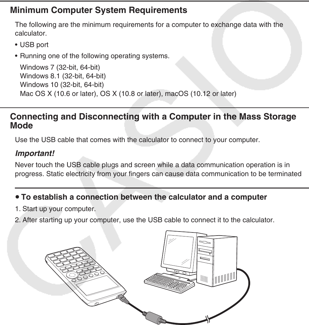 computer to recognize the calculator’s storage memory as a mass storage drive. Connection