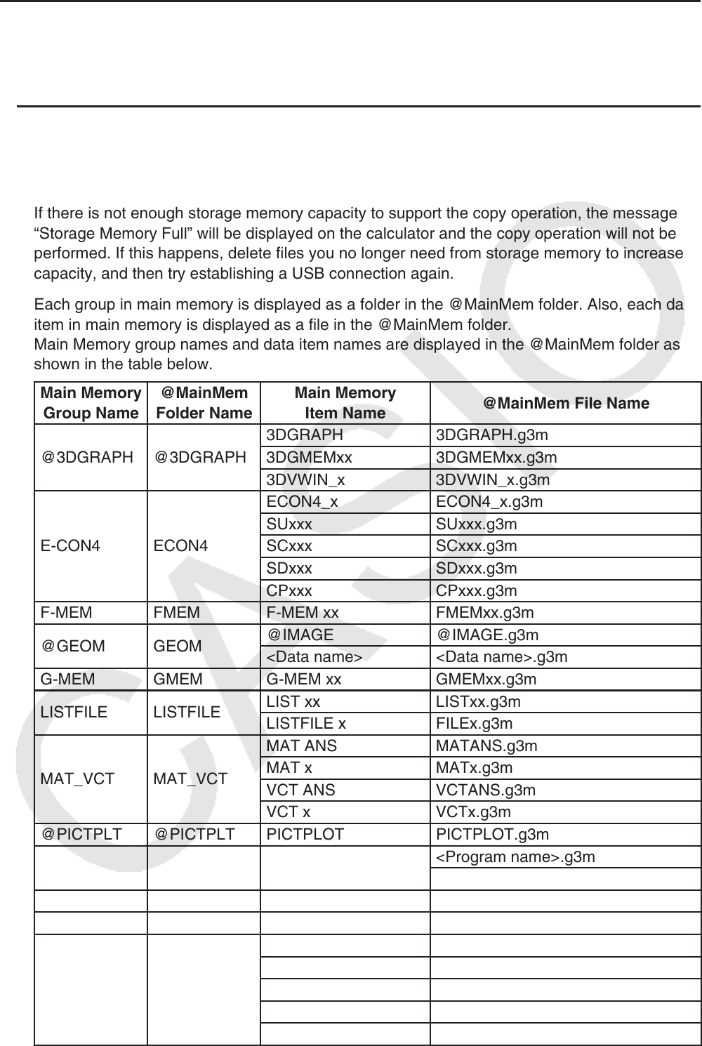 “Storage Memory Full” will be displayed on the calculator and the copy operation will not be