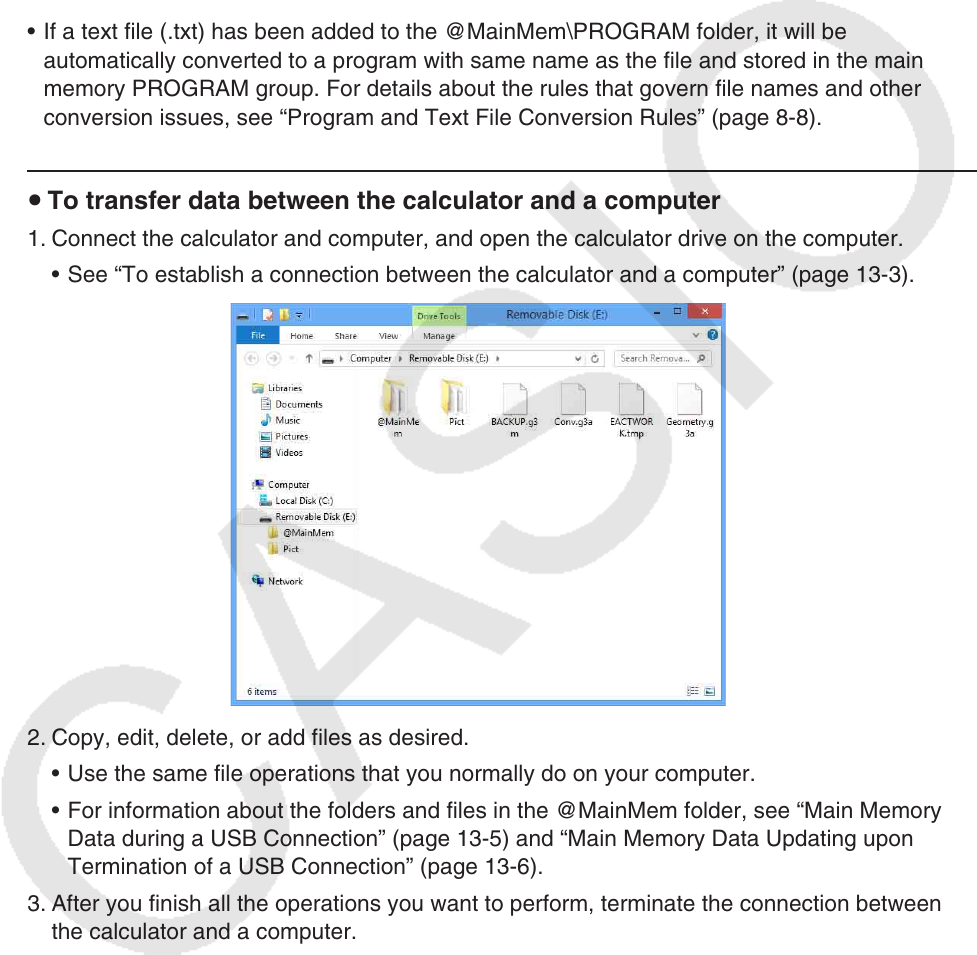 • If you place a file or folder that is not supported by the calculator into the @MainMem folder,