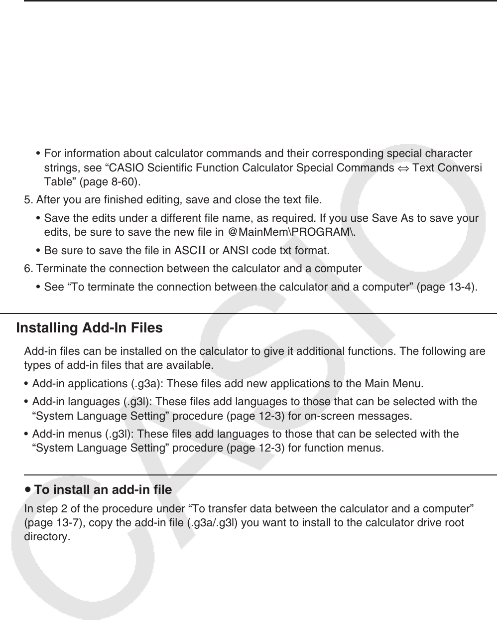 (page 13-7), copy the add-in file (.g3a/.g3l) you want to install to the calculator drive root