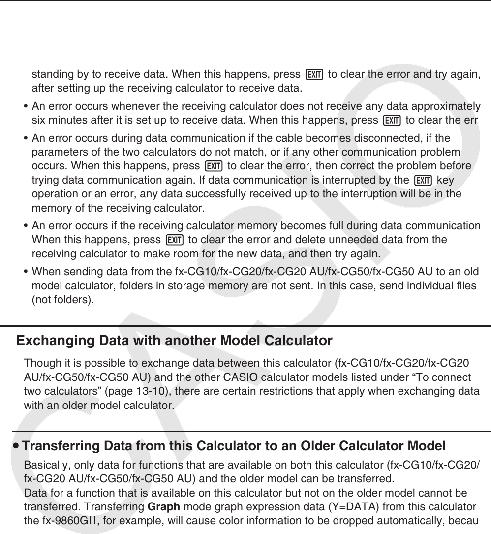 • An error occurs if the receiving calculator memory becomes full during data communication.