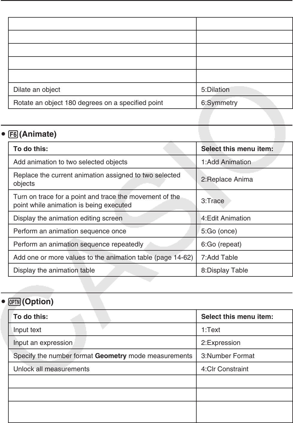 Add one or more values to the animation table (page 14-62) 7:Add Table