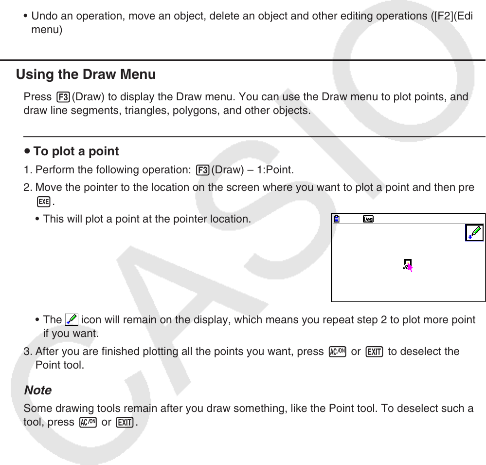 Press 3(Draw) to display the Draw menu. You can use the Draw menu to plot points, and